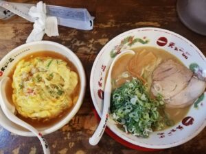 こってりスープのかかった天津飯もあっさりラーメンも。どちらも最後まで飽きることなく楽しめました。